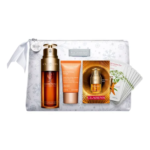 Сыворотка для лица Double Serum и сыворотка для кожи вокруг глаз Double Serum Eye стимулируют все пять жизненно важных функций кожи, отвечающих за сохранение ее красоты и молодости: увлажнение, питание, защита, насыщение кислородом, регенерация. А крем Extra-Firming Energy способствует повышению упругости кожи и заметному сокращению морщин, улучшает цвет лица и придает коже здоровое сияние.