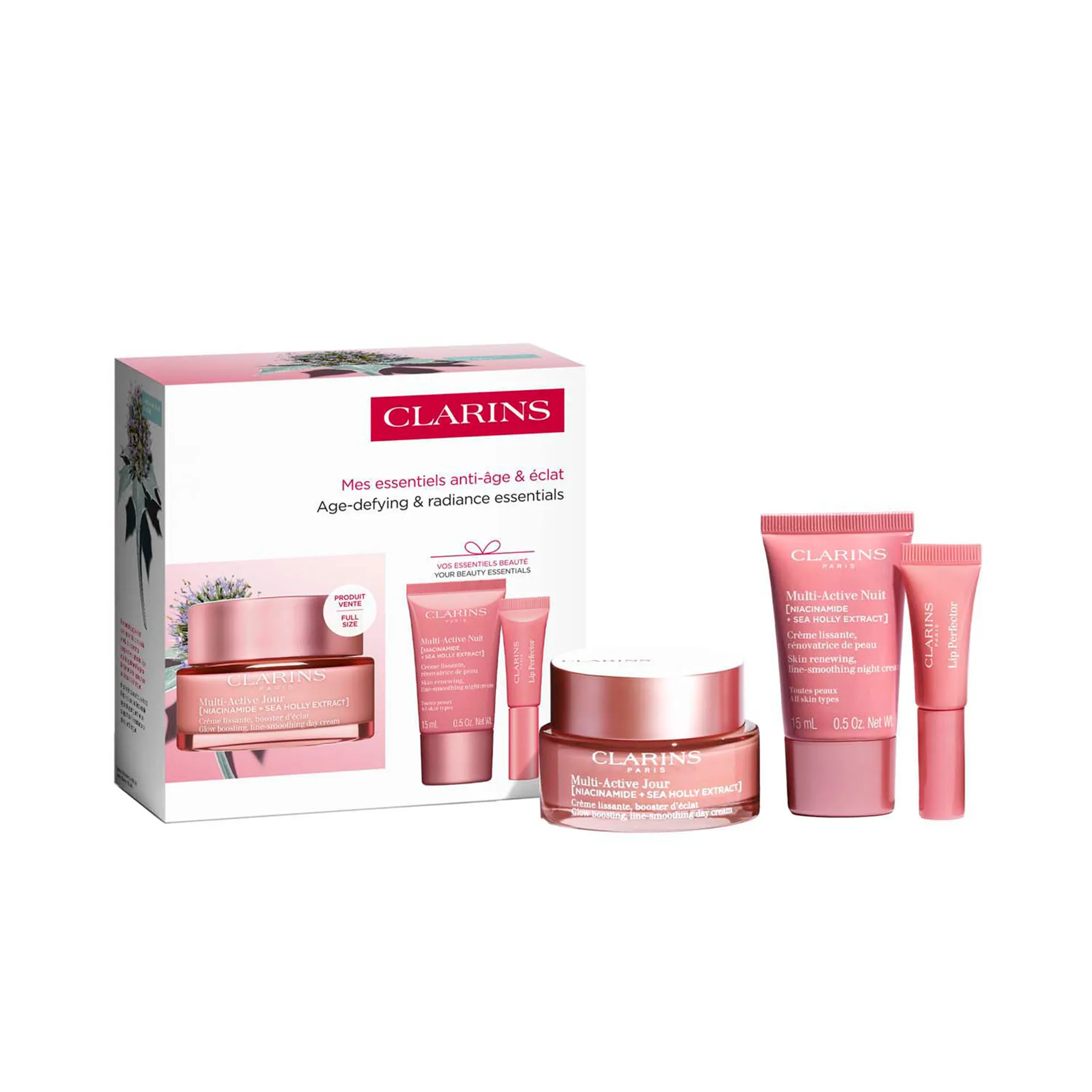Набор средств против первых возрастных изменений для активных женщин, которые хотят защитить кожу от воздействия усталости и стресса. Дневной и ночной кремы Multi-Active содержат ниацинамид и экстракт синеголовника приморского. Эти активные ингредиенты повышают сопротивляемость кожи к внешней агрессии, сохраняя ее сияние и молодость. Блеск Lip Perfector создает влажные блики и эффект объема, подходит для губ и скул.