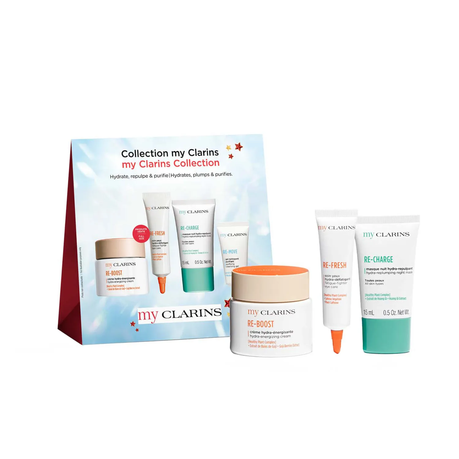 ΠΎΠ΄Π° My Clarins, ΡΠΏΠ΅ΡΠΈΠ°Π»ΡΠ½ΠΎ ΡΠ°Π·ΡΠ°Π±ΠΎΡΠ°Π½Π½ΡΠ΅ Π΄Π»Ρ ΠΌΠΎΠ»ΠΎΠ΄ΠΎΠΉ ΠΊΠΎΠΆΠΈ. ΠΡΠΈΡΠ°ΡΡΠΈΠΉ Π³Π΅Π»Ρ Π΄Π»Ρ Π»ΠΈΡΠ° My Clarins Ρ ΡΠΊΡΡΡΠ°ΠΊΡΠΎΠΌ ΡΠ°Π²ΠΎΠ»ΠΎΠΆΠ½ΠΈΠΊΠ° (ΠΎΡΠ³Π°Π½ΠΈΡΠ΅ΡΠΊΠΎΠ΅ ΡΠ°ΡΡΠ΅Π½ΠΈΠ΅) ΡΡΡΠ΅ΠΊΡΠΈΠ²Π½ΠΎ ΡΠ΄Π°Π»ΡΠ΅Ρ Π·Π°Π³ΡΡΠ·Π½Π΅Π½ΠΈΡ ΠΈ ΠΈΠ·Π»ΠΈΡΠΊΠΈ ΡΠ΅Π±ΡΠΌΠ°, ΠΏΡΠΎΠ²ΠΎΡΠΈΡΡΡΡΠΈΠ΅ Π²ΠΎΡΠΏΠ°Π»Π΅Π½ΠΈΡ. Π’ΠΎΠ½ΠΈΠ·ΠΈΡΡΡΡΠΈΠΉ ΠΊΡΠ΅ΠΌ Π΄Π»Ρ Π»ΠΈΡΠ° My Clarins Ρ ΠΎΡΠ³Π°Π½ΠΈΡΠ΅ΡΠΊΠΈΠΌΠΈ ΡΠΊΡΡΡΠ°ΠΊΡΠ°ΠΌΠΈ ΠΈΠ½ΠΆΠΈΡΠ° ΠΈ ΡΠ³ΠΎΠ΄ Π³ΠΎΠ΄ΠΆΠΈ ΡΠ²Π»Π°ΠΆΠ½ΡΠ΅Ρ ΠΊΠΎΠΆΡ ΠΈ Π½Π°ΠΏΠΎΠ»Π½ΡΠ΅Ρ Π΅Π΅ ΠΊΠ»Π΅ΡΠΊΠΈ ΡΠ½Π΅ΡΠ³ΠΈΠ΅ΠΉ. Π ΡΠΎΡΡΠ°Π²Π΅ Π½ΠΎΡΠ½ΠΎΠΉ ΠΌΠ°ΡΠΊΠΈ Π΄Π»Ρ Π»ΠΈΡΠ° My Clarins ΡΠ°Π±ΠΎΡΠ°Π΅Ρ ΡΠΊΡΡΡΠ°ΠΊΡ Π»ΠΈΡΡΡΠ΅Π² ΡΠ½Π³Π΅Π»ΡΡ