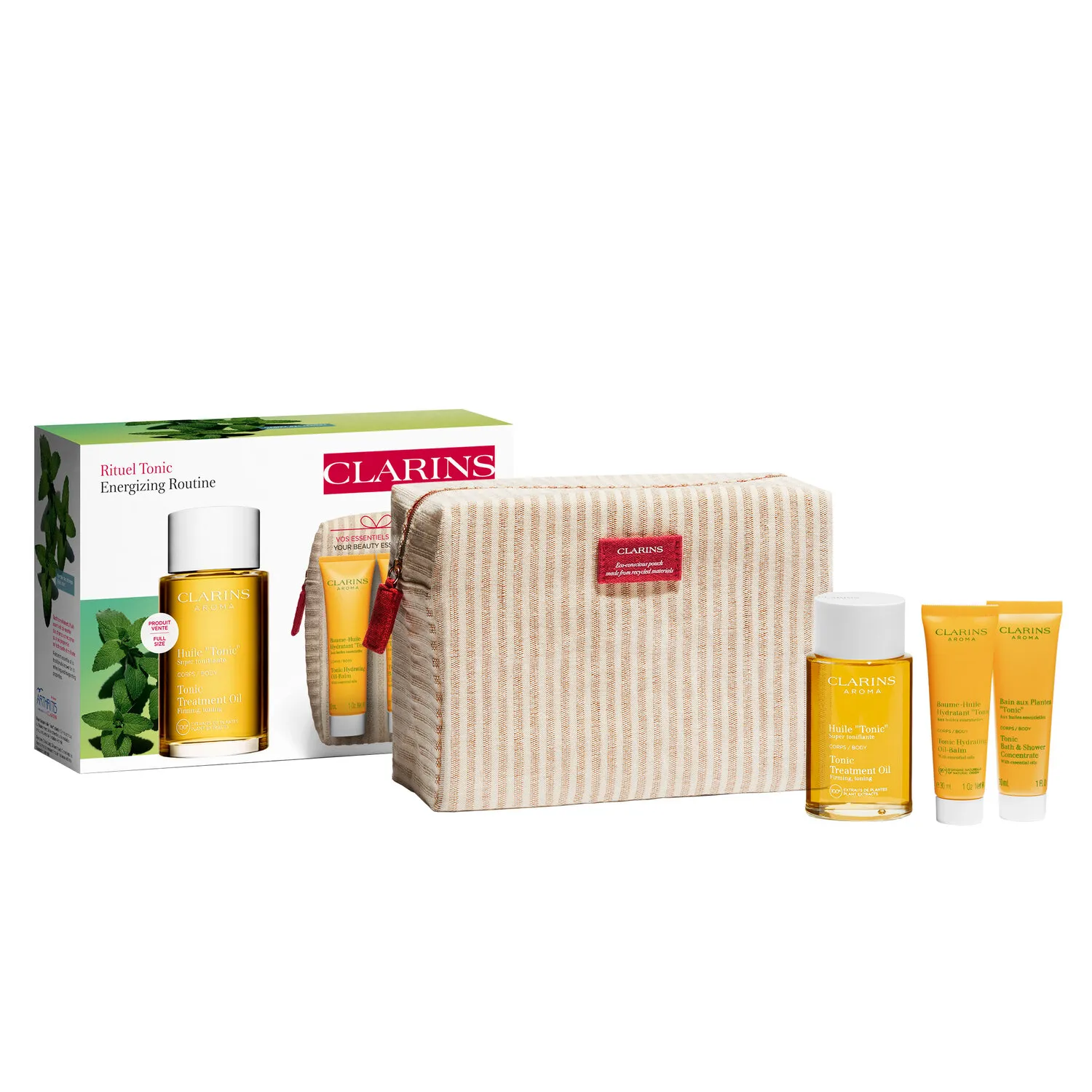 В этот набор входят средства, которые помогают найти время для себя и устроить настоящее спа в домашних условиях. Добавьте в ванну немного тонизирующей пены Tonic, наполните ее теплой водой и насладитесь возможностью побыть наедине с собой. После принятия ванны нанесите небольшое количество масла на кожу массирующими движениями. Далее используйте тонизирующий увлажняющий бальзам для тела Tonic, поднимаясь от щиколоток и запястий к плечам. Все средства заключены в удобную косметичку.