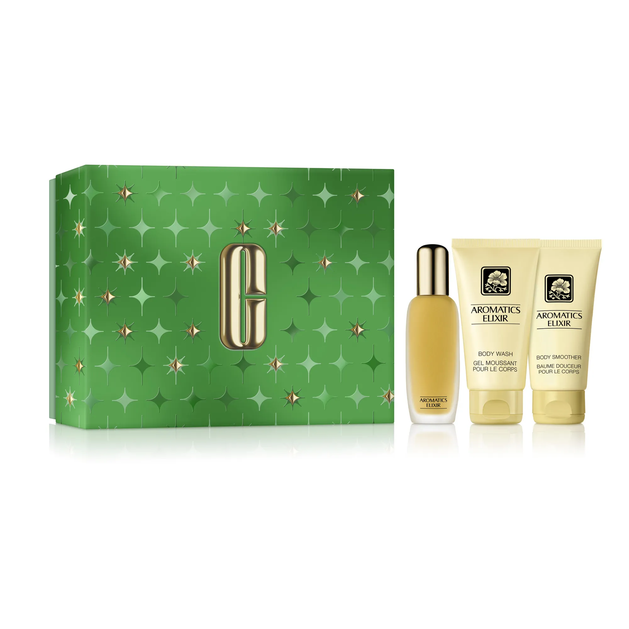 Легендарный классический аромат набора Aromatics Elixir окутывает вуалью изысканности и женственности, погружая в магический мир парфюмерных нот.