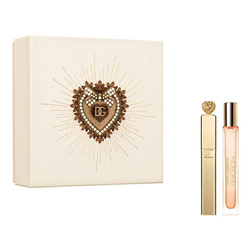 Роскошный подарочный набор DEVOTION от DOLCE&GABBANA включает в себя парфюмерную воду DEVOTION в формате спрея для путешествий и тушь для ресниц DEVOTION EXTREME VOLUME. Эти средства воплощают совершенную красоту благодаря своему потрясающему аромату и безупречному действию, а на их упаковке представлен культовый элемент Святого Сердца — универсального символа любви во всех ее проявлениях.