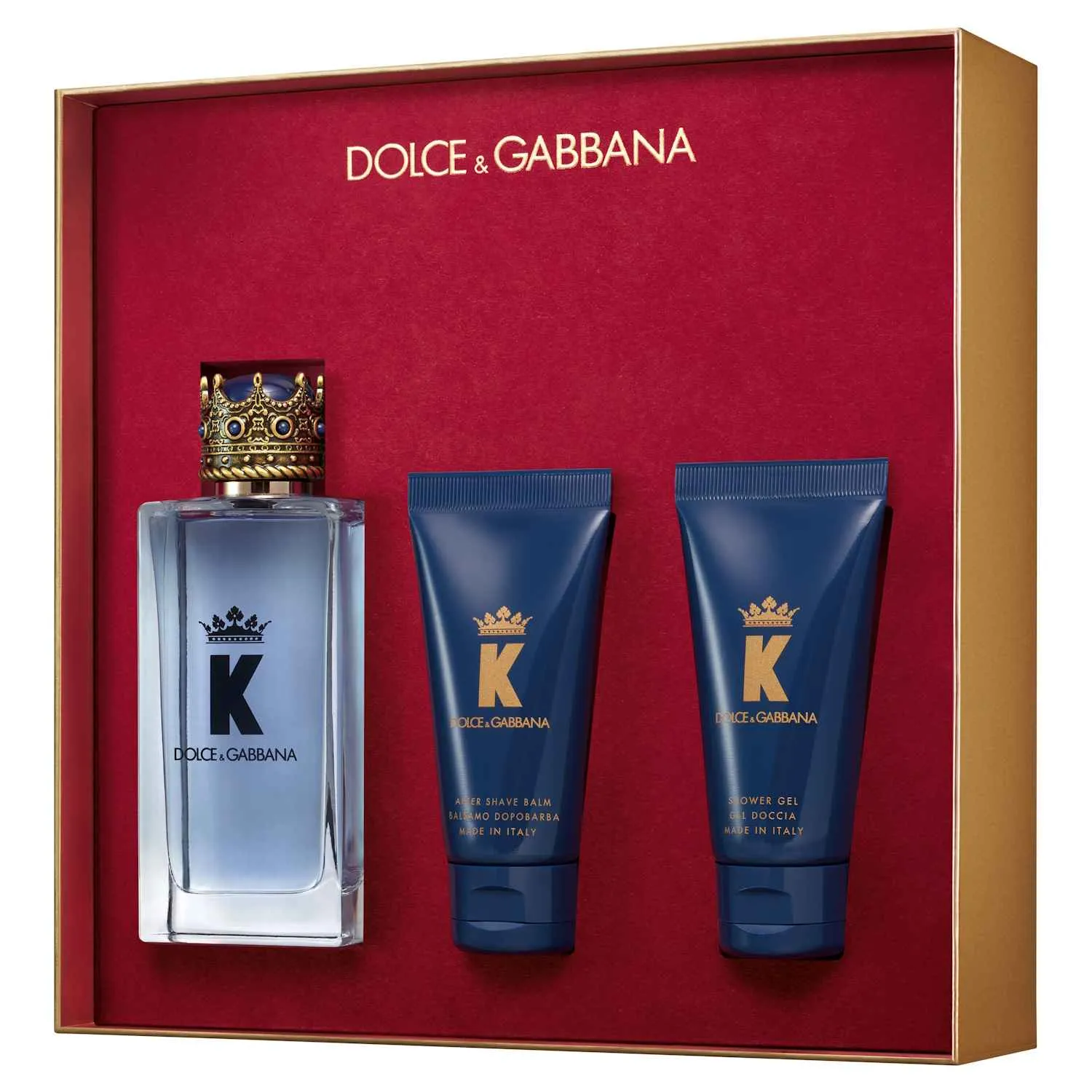 Этот набор, представлен в эксклюзивной коробке из красного бархата, украшен культовым логотипом DG, включает в себя продукты линии K от Dolce&Gabbana.