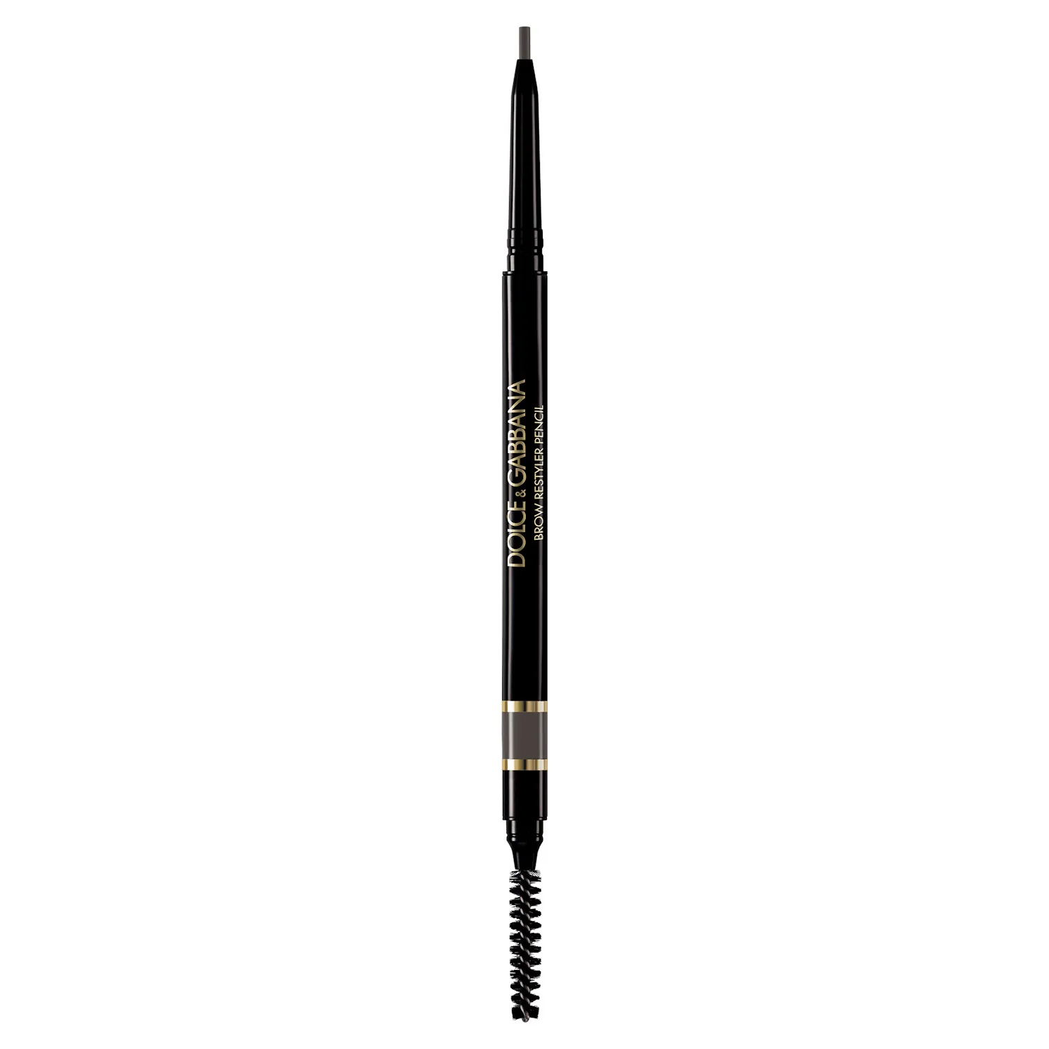Brow Restyler Pencil — ультратонкий карандаш для бровей стойкостью до 16 часов*, предназначенный для легкого оформления бровей и заполнения пустот. Двухсторонний дизайн отличают тонкий стержень для точного нанесения и щеточка для расчесывания бровей и придания им безупречной формы. Идеальная на каждый день водостойкая формула не оставляет следов, не растекается и устойчива к воздействию пота*. Продукт доступен в 6 оттенках для различных типов бровей. Карандаш элегантного черно-золотистого дизайна, навеянного стилистическими кодами Dolce&Gabbana, незаменим для безупречного и стойкого макияжа бровей.