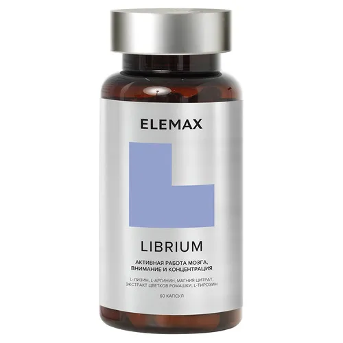 Биологически активная добавка к пище Либриум (Librium) (капсулы по 500 мг) 60 капсул: Комплекс Librium помогает активизировать работу мозга, улучшить когнитивные навыки и нормализовать работу центральной нервной системы. В состав препарата входит более десяти компонентов. Они оказывают синергетический эффект и помогают эффективно справляться с целым рядом задач без потери внимания и концентрации. БАД не является лекарственным средством. Противопоказания: Индивидуальная непереносимость компонентов, беременность, кормление грудью, повышенная нервная возбудимость, бессонница, повышенное артериальное давление, нарушения сердечной деятельности, выраженный атеросклероз, прием в вечернее время.