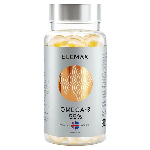 Elemax Omega-3 содержит высокоочищенные омега-3 жирные кислоты ЭПК и ДГК в оптимальном соотношении