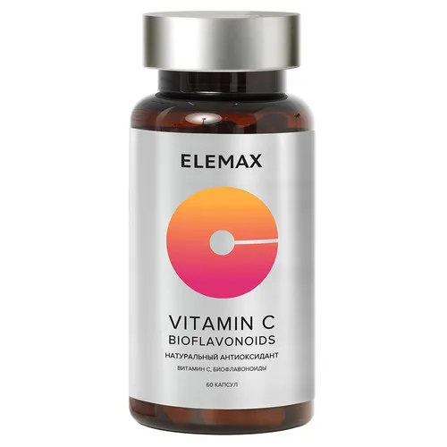 биологически активная добавка к пище Витамин С биофлавоноиды (Vitamin C bioflavonoids) (капсулы по 720 мг) 60 капсул: Частые и затяжные простудные заболевания — признак ослабленного иммунитета. Витамин С поддерживает работу иммунной системы, повышает устойчивость организма к вирусам, защищает клетки от окисления. В природе действие витамина С усиливают биофлавоноиды — полифенолы, стимулирующие его антиоксидантные и противовоспалительные свойства. Флавоноиды и витамин С не вырабатываются организмом человека и должны поступать с пищей. ELEMAX повторяет это природное сочетание в формуле препарата, чтобы увеличить биодоступность и эффективность витамина С. В синергии с витамином С биофлавоноиды обеспечивают мощную комплексную поддержку иммунной защиты организма. БАД не является лекарственным средством. Противопоказания: Индивидуальная непереносимость компонентов, беременность, кормление грудью.
