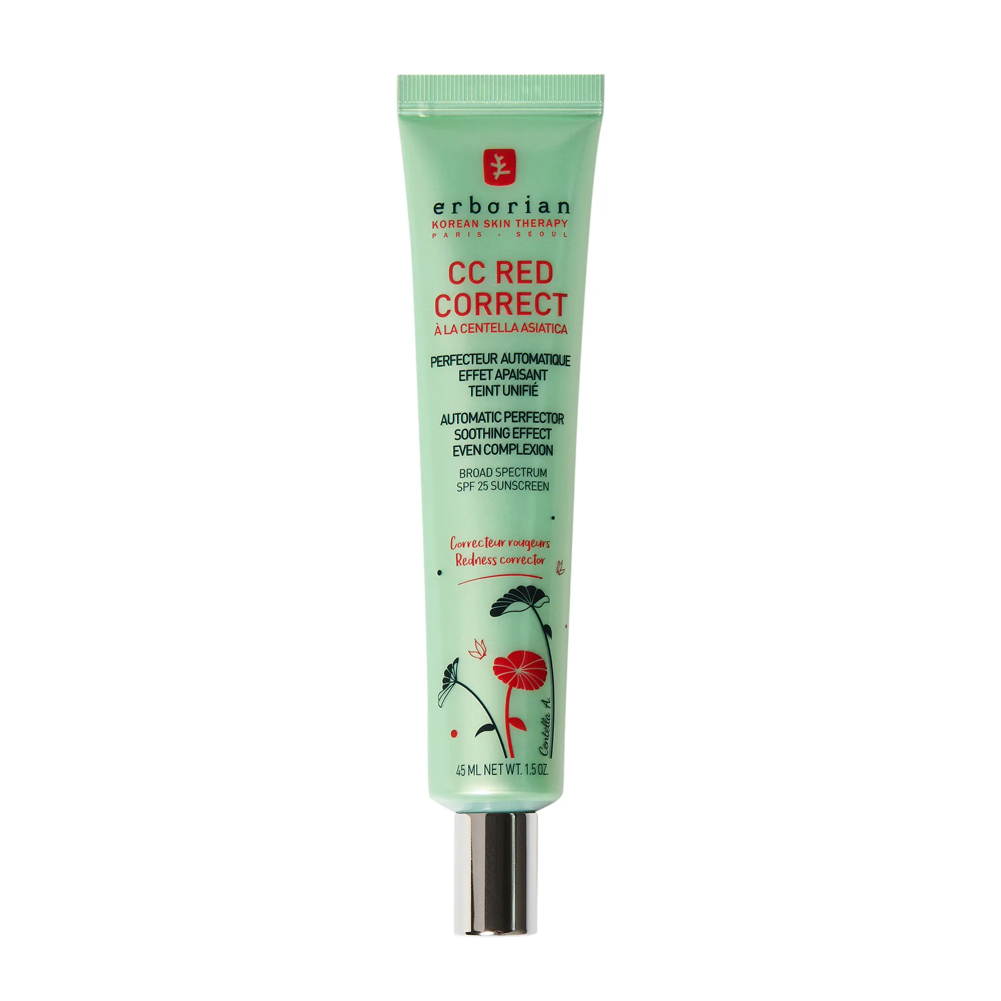 СС RED подстраивается под тон кожи и улучшает цвет лица благодаря своей инновационной способности к цветокоррекции. Все благодаря особому зеленому пигменту, частицы которого, соприкасаясь с кожей, трансформируются, устраняя покраснения. Обогащённый Центеллой азиатской, CC RED увлажняет кожу, придает ей сияние и помогает скрыть несовершенства. Кожа выглядит заметно более здоровой.