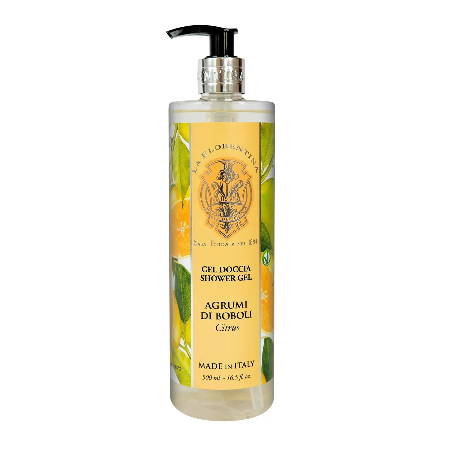 Гель для душа La Florentina - это ароматный и красивый островок Италии, способный создать сказочое настроение в любой ванной комнате и по-настоящему позаботиться о вас. Гель для душа с ароматом солнечного цитруса станет отличным способом побаловать себя и украсит ваш дом, наполнив его озорным, бодрящим ароматом ярких цитрусов. Нежный гель имеет легкую, текстуру, отлично пенится и обогащен оливковым маслом и натуральными экстрактами. Гель не содержит парабеноов, силиконов и агрессивных моющих основ, а значит - бережно заботится даже о самой чувствительной коже, питая и увлажняя ее, не вызывает раздражения, ощущения стянутости, и дарит ощущение свежести и отличное настроение на весь день.