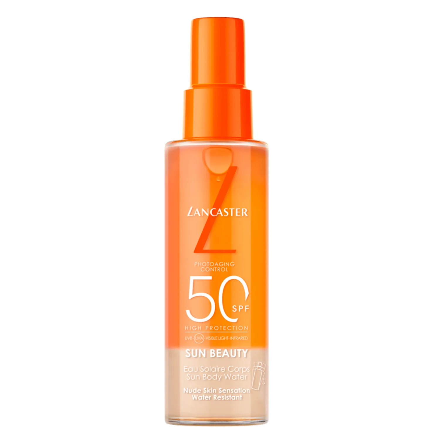 Lancaster Sun Beauty Sun Body Water SPF50 — ваш главный союзник в защите от фотостарения. Full Light Technology TM предлагает технологию в 10 раз более широкого спектра действия (1), а комплекс Tan Activator обеспечивает легендарный золотистый загар за вдвое меньшее время пребывания на солнце. Ультралегкая и нежирная, эта двухфазная солнечная вода очень проста в применении и быстро впитывается в кожу, создавая ощущение обнаженной кожи.