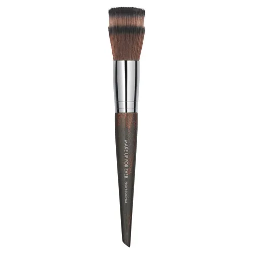 Эта кисть имеет двухцветный ворс и наборку ворса в два уровня, более короткий базовый как формообразующий, а более длинный является основным рабочим. Универсальная кисть имеет несколько назначений, её рабочая часть - удлиненные ворсинки воздушно нанесут пудру или жидкие тональные средства, степень покрытия тонко различимая и плавная, естественный и прозрачный результат. Её чрезвычайная мягкость также идеально подходит для нанесения макияжа для чувствительной кожи.