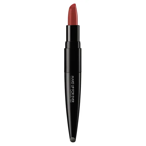 Пигменты в сочетании со смягчающим маслом обеспечивают максимальную цветопередачу и легкое нанесение текстуры. Комплекс из светоотражающих пудр разглаживает морщинки и трещинки, создавая равномерное покрытие. Уходовый комплекс, состоящий из 100% натурального масла камелии, питает и увлажняет губы. Помады представлены в 28 оттенках, а гамма разложена на 5 гармоний: теплый и холодный нюд, розовый, коралловый и красный. Цвет #402 – канонический для MAKE UP FOR EVER: идеальный баланс теплого и холодного!