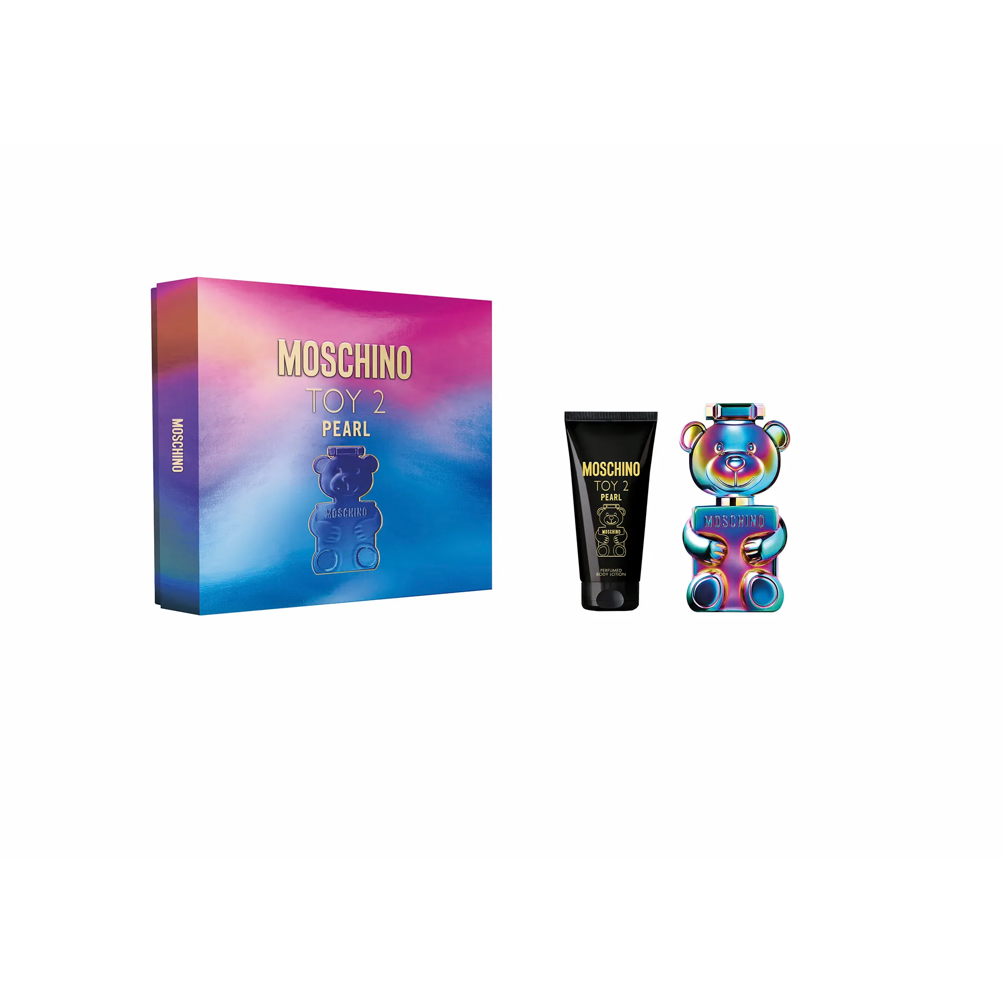 В подарочный набор TOY 2 PEARL от MOSCHINO входят парфюмерная вода TOY 2 PEARL (30 мл) и парфюмированный лосьон для тела (50 мл) из этой же коллекции.
