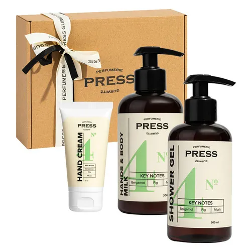 Подарочный набор Press Gurwitz Perfumerie №3 с нотами бергамота, инжира, мускуса, с парфюмированными средствами, которые созданы для истинного наслаждения. Коллекция включает в себя 3 потрясающих косметических средства по уходу за руками и телом :