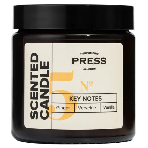 Ароматизированная свеча №5 с нотами имбиря, ванили и вербены. Взрывной букет свежих и сладких нот аромата открывается летучей кислинкой вербены, вступающую в игру с нотами имбиря и обогащенный гурманскими нотами ванили. Аромат, который понравится всем и наполнит ваше пространство атмосферой праздника и легкости.