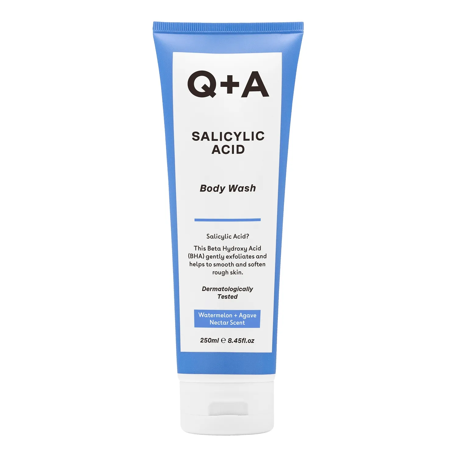 Гель для душа с салициловой кислотой Q+A Salicylic Acid (250 мл) бережно очищает, мягко отшелушивает, разглаживает и смягчает кожу. Формула геля с экстрактами зеленого чая, алоэ вера и коры ивы увлажняет, успокаивает воспаления и выравнивает текстуру кожи, даря ей ощущение свежести и комфорта. Воздушная пена и приятный фруктовый аромат арбуза и нектара агавы поднимут настроение. Дерматологически протестирован, подходит для ежедневного использования и всех типов кожи.