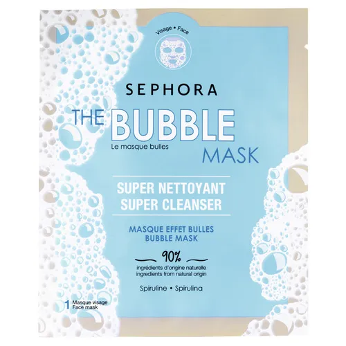 Пузырьковая маска от Sephora Collection на 90% состоит из натуральных ингредиентов и обогащена натуральной спирулиной*. За считанные секунды она начинает пениться и пузыриться, чтобы очистить кожу и поры, используя всю ""силу"" спирулины*!