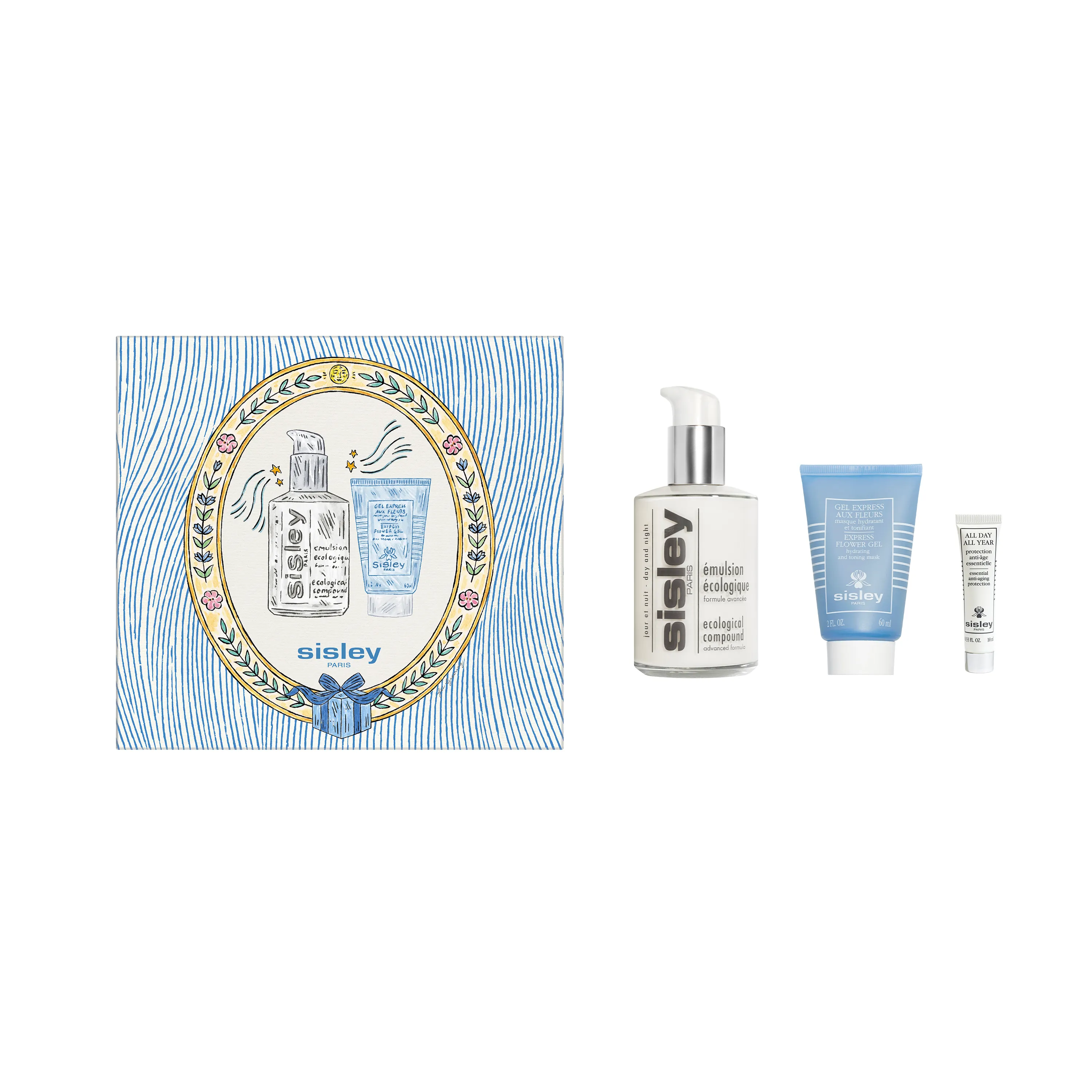 Откройте для себя мир чистого очарования с подарочным набором Sisley, украшенным оригинальным и изысканным рисунком британской художницы Фи Грининг.