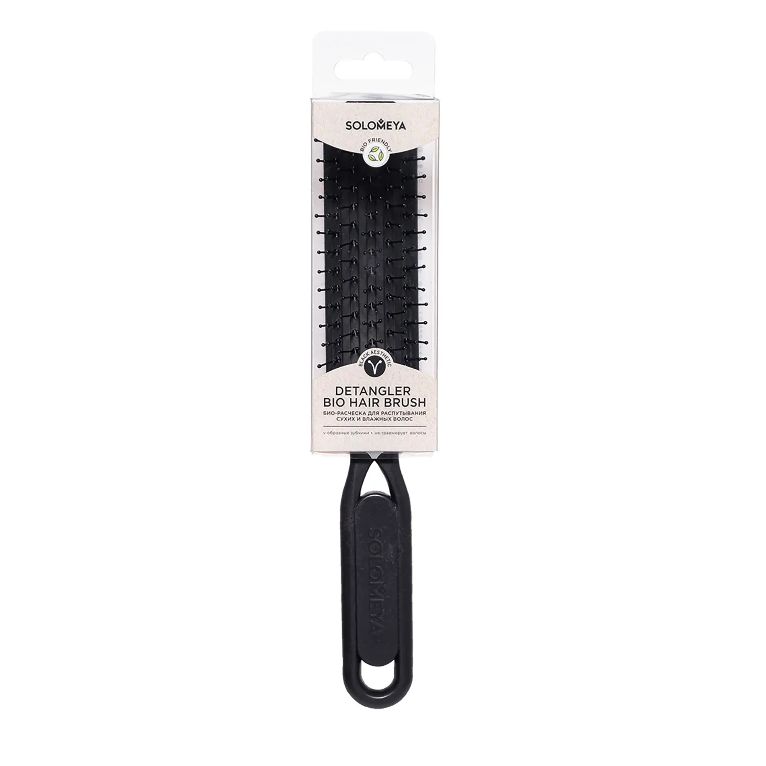 Био-расческа для волос черного цвета - это комфортное расчесывание, которое дарит легкий и приятный массажный эффект. Расческа имеет подвижный корпус и мягкие гибкие V-образные зубчики, что обеспечивает аккуратное скольжение по волосам и отсутствие спутываний. Гибкая конструкция и удобная форма ручки создает дополнительный комфорт при использовании, а компактность позволяет брать расческу с собой и использовать где угодно. Массажная расческа изготовлена из экологически чистого биоразлагаемого материала BIO-FRIENDLY, а именно - из натуральной пшеницы. Био-расческа подходит для любого типа волос: прямых, кудрявых, сухих, влажных, а также нарощенных или ослабленных - она легко распутывает и деликатно расчесывает даже самые непослушные волосы.