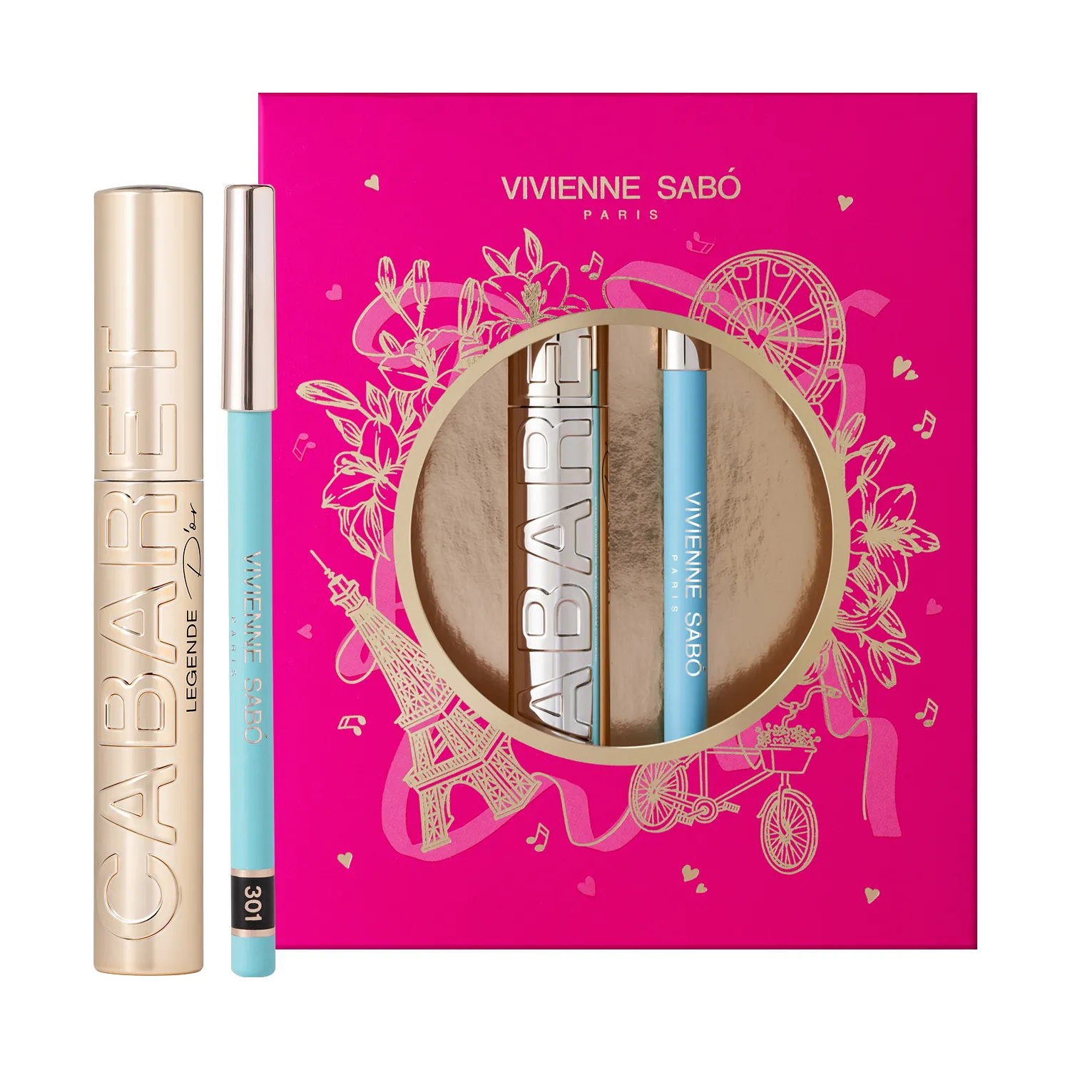 Набор VIVIENNE SABÓ для выразительного взгляда — идеальный дуэт твоих любимых бьюти-средств. CABARET LEGENDE D’OR — приглашение на праздник красоты, вдохновленный атмосферой парижского кабаре. Тушь с пластиковой зауженной щеточкой идеально разделяет и прокрашивает каждую ресничку, дарит объем и длину, а формула с пептидами обеспечивает уход. Карандашом для глаз LINER FLIRTEUR можно нарисовать аккуратные стрелки, сделать smoky eyes, расставить акценты или создать подложку для теней. Его текстура с комплексом восков стойко держится на коже, легко наносится, растушевывается и не отпечатывается. Порадуй набором VIVIENNE SABÓ в подарочной упаковке себя и близких!